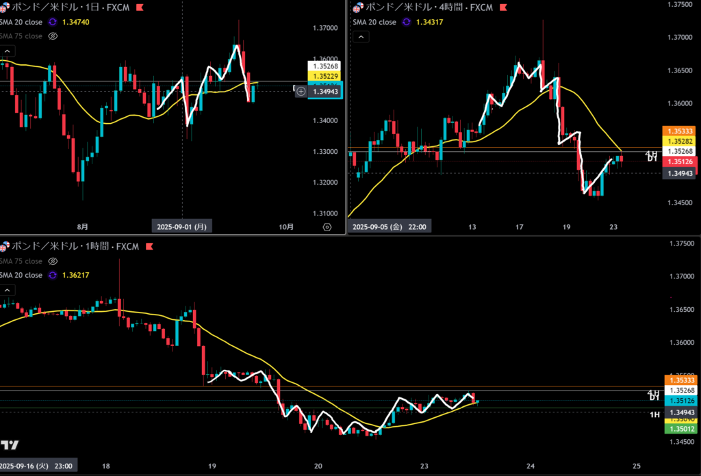 日足の売り抑え勢力が4時間の押し目買い勢力の上に2本あるのがリスク。