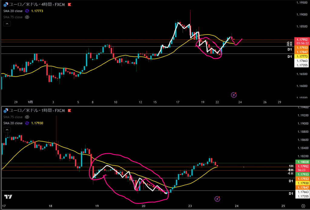 4時間では日足の押し目買い勢力と日足のMAもある。