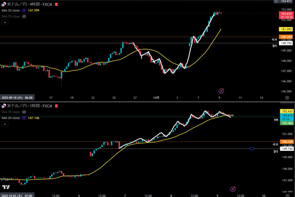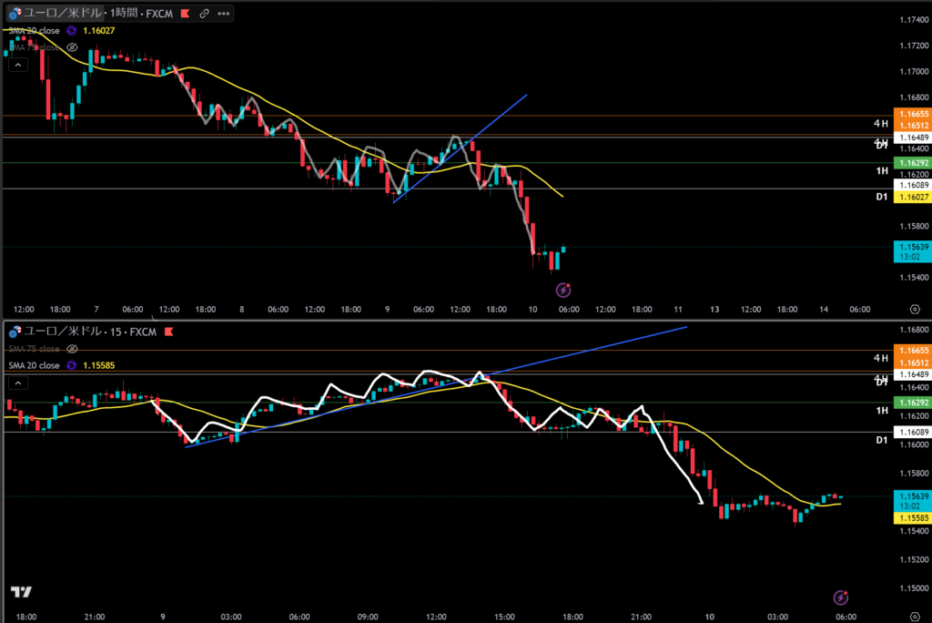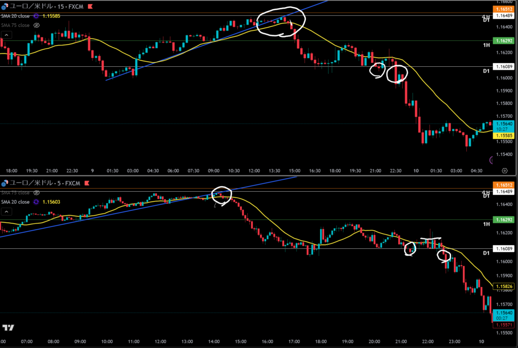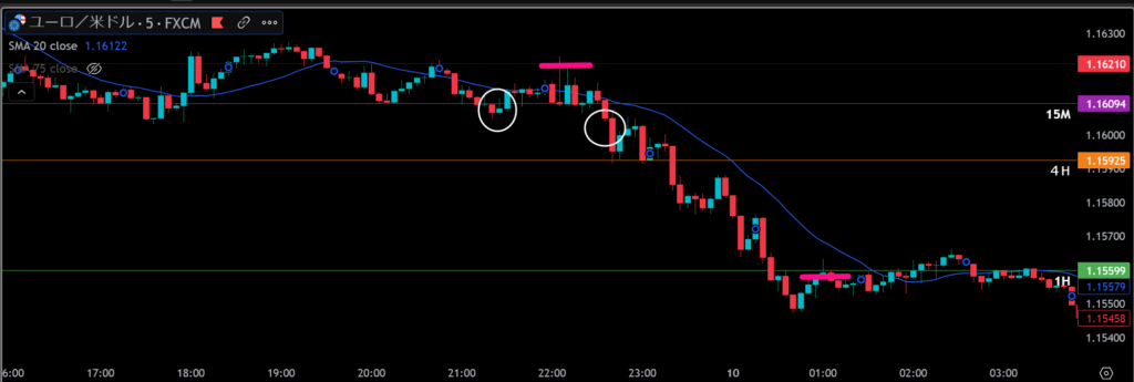 斜め抜けはやり1時間の移動平均線が気になる。なので確実なのは1時間の移動平均線の