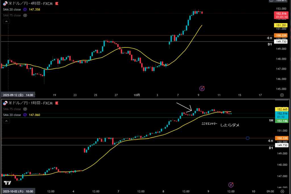 下位足だけはみない。下位足に落とすのはエントリーポイントが見えたときぐらい。