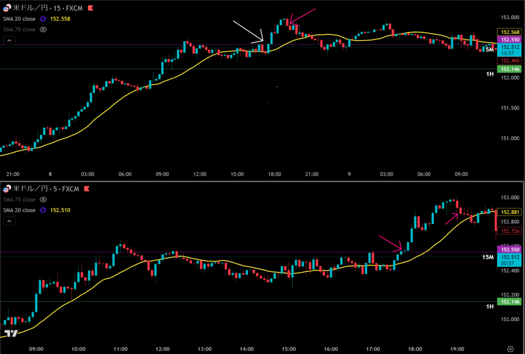 1時間と15分だけで、15分の押し目買いと考えるのはシナリオにない