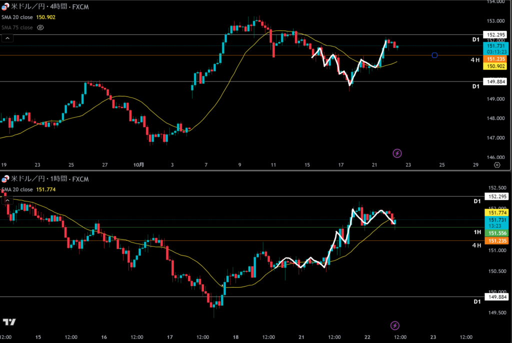 1時間と15分だけで、15分の押し目買いと考えるのはシナリオにない