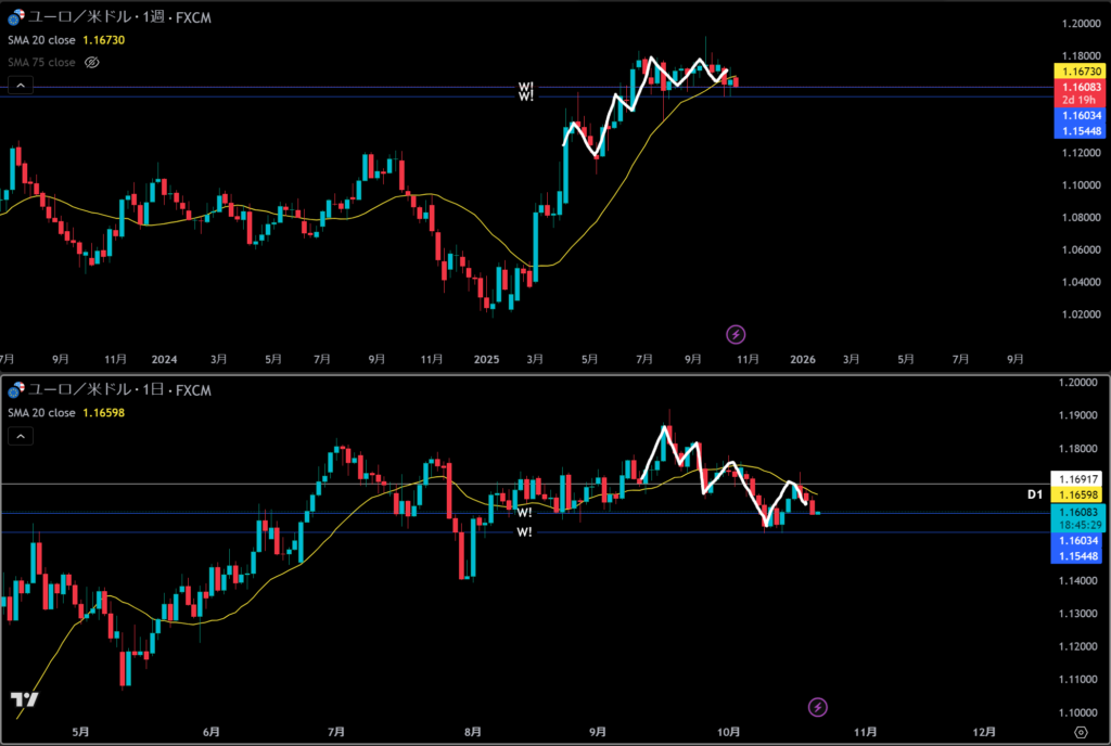 日足は割っている、青のライン戻り売り勢力いるか。