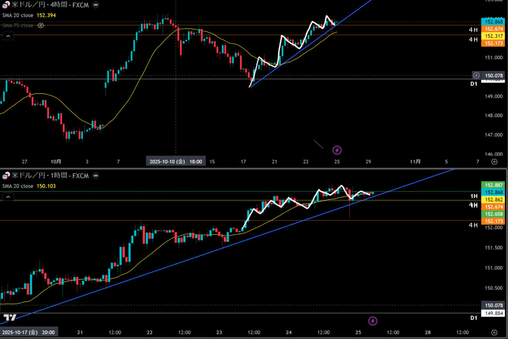 1時間も上位足のリスクを考えると