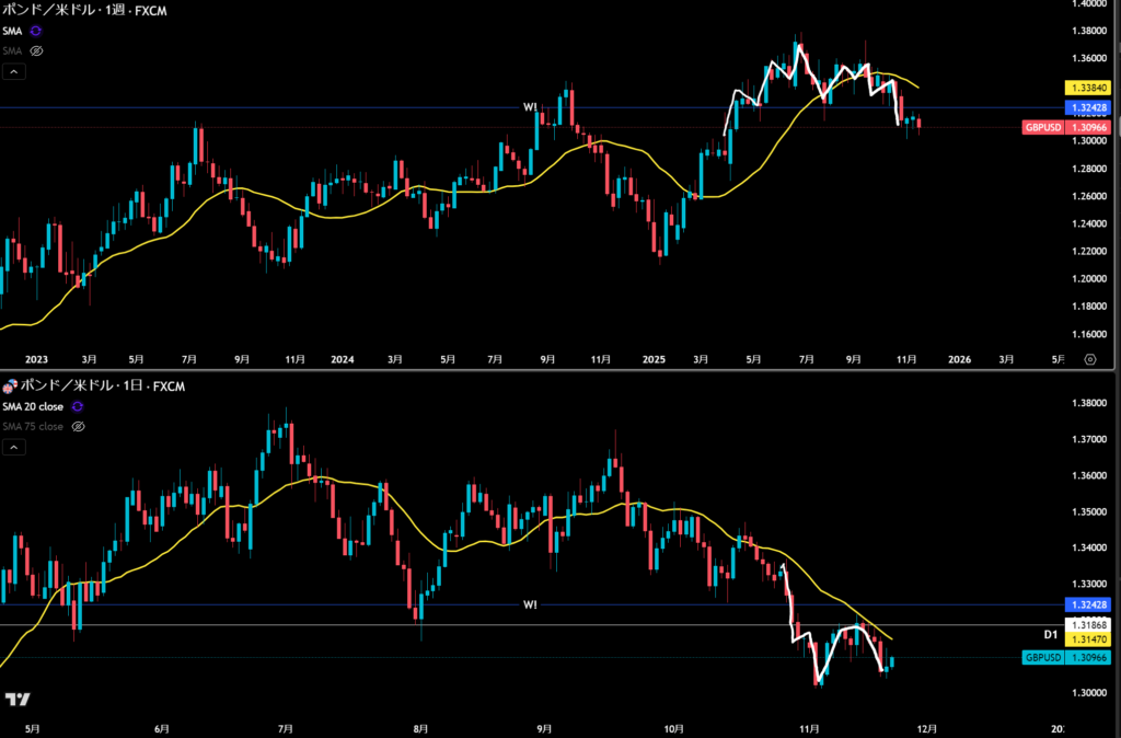 週足は方向下