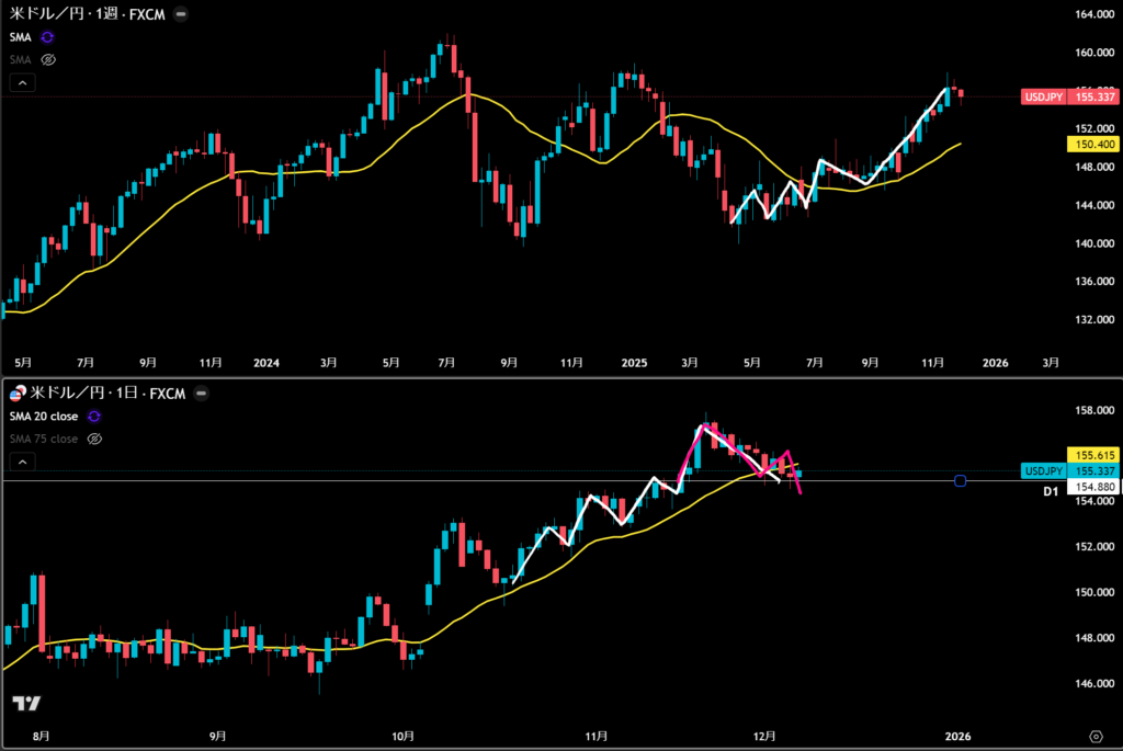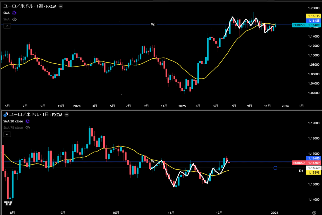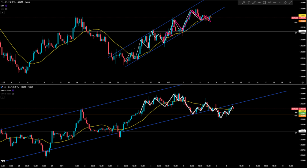 まで来ている現状ではMAでも抑えられている。ロングはレジスタンとして下位足ではリスクになる。