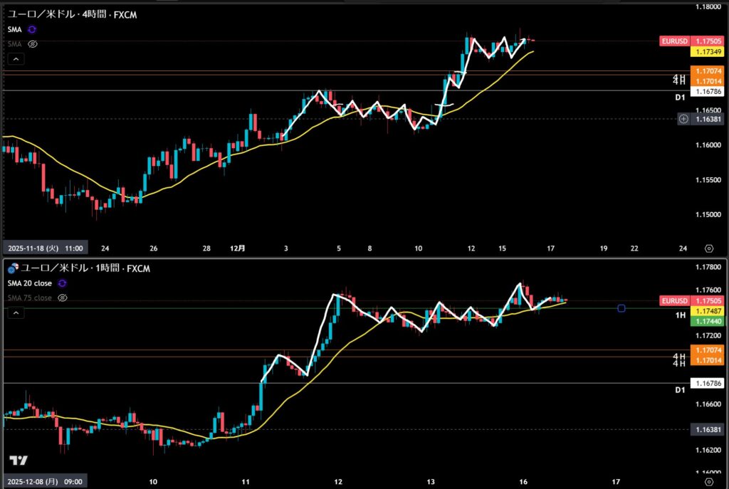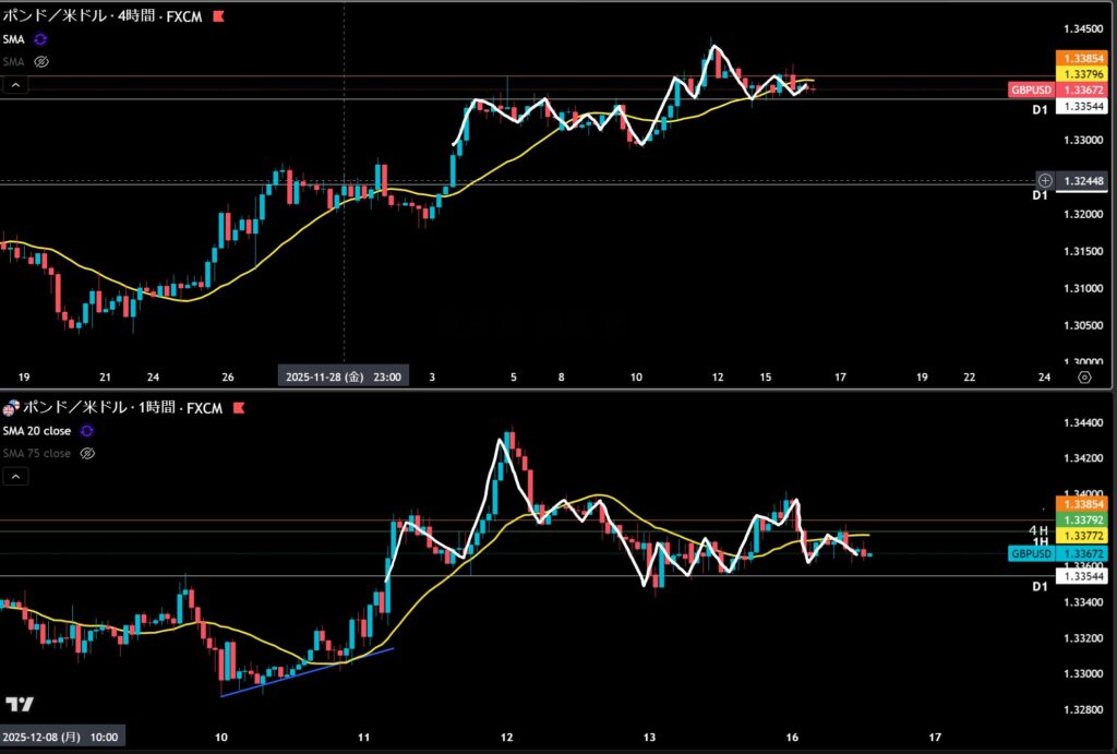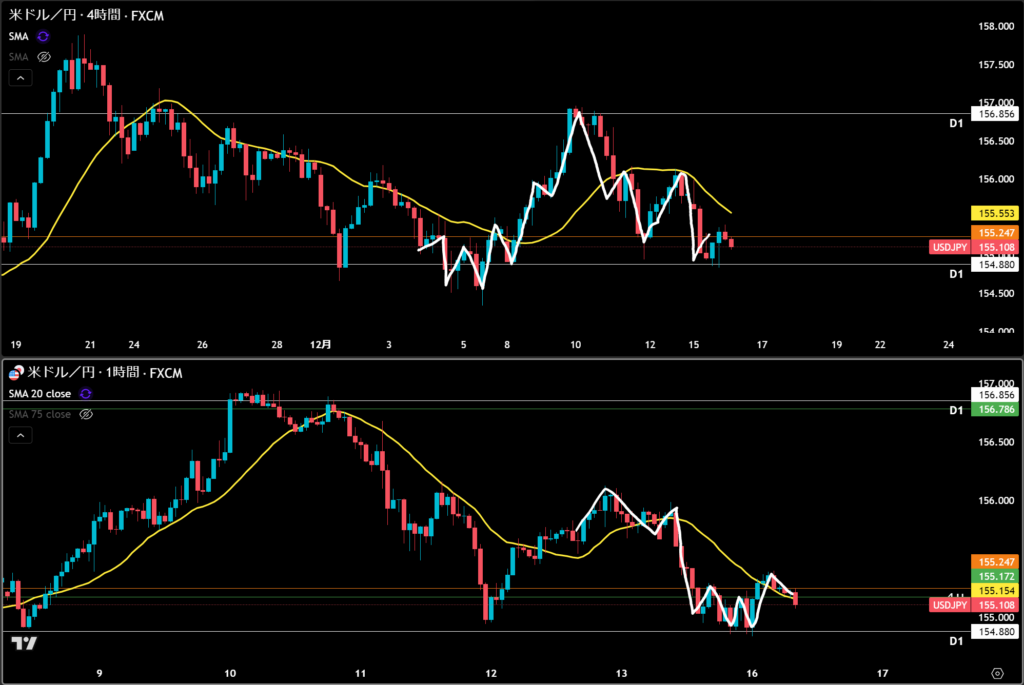 にはなってくるがMAはまだ日足は時間経過がいるし、4時間はまだ上にあるので仮にエントリーポイントを超えたとしてもMAは注意。