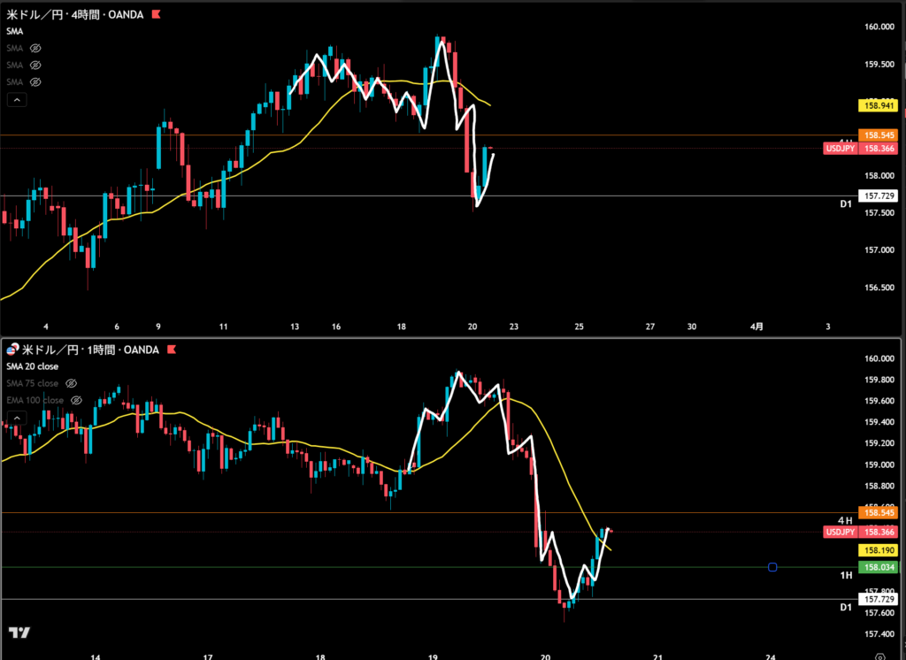 4時間の下と日足の上の戦争が起きる可能性が高い。
